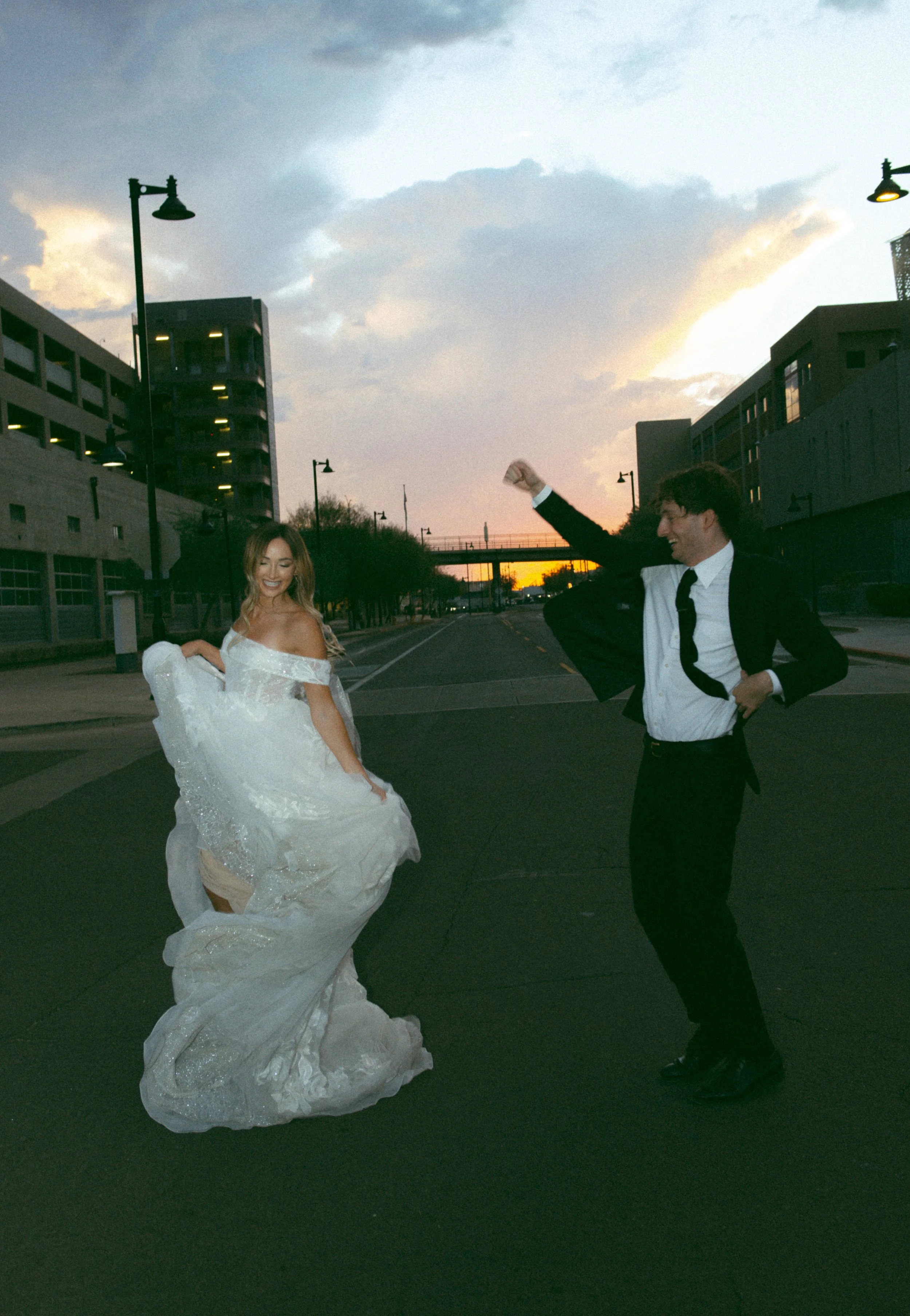 The Icehouse in Phoenix is one of those rare venues that naturally supports both luxury styling and documentary storytelling. Its open industrial space gives room for dramatic light, bold architecture, and editorial compositions. But step just outside, and the surrounding streets create opportunities for something more spontaneous — movement, energy, and real celebration.